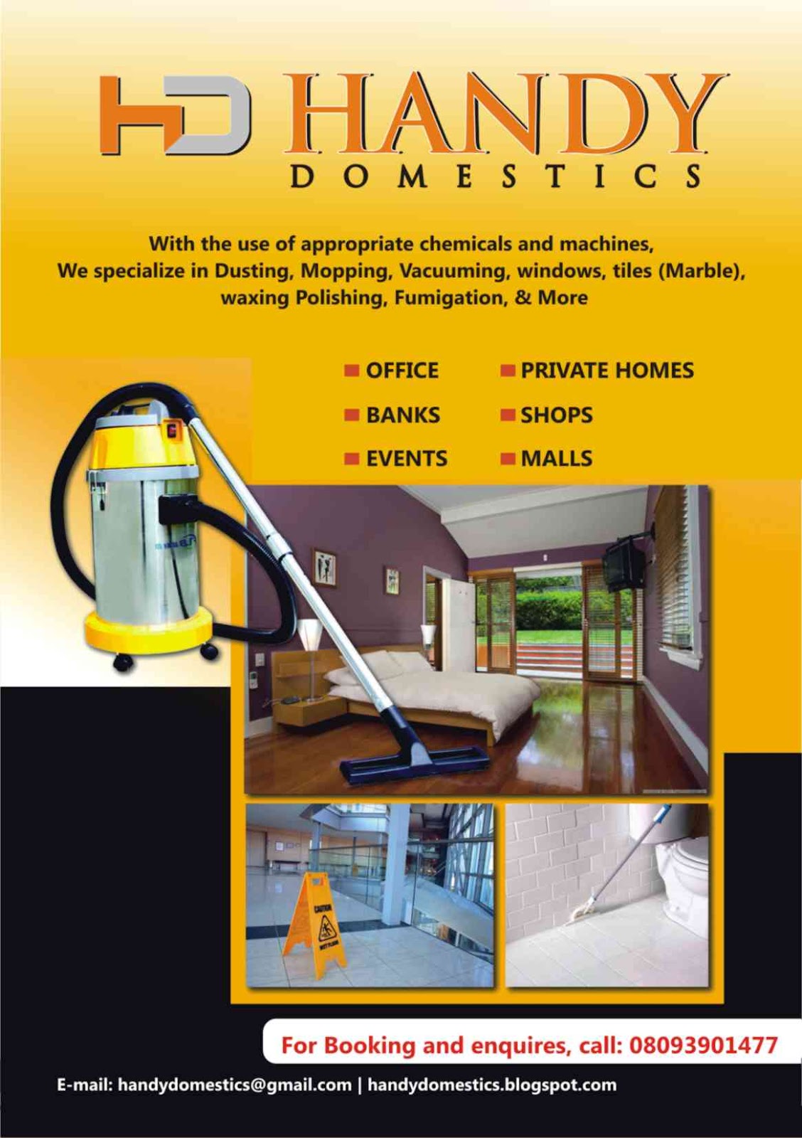 For a free estimate or more information please call us at 08093901477 or e-mail us at Handydomestics@gmail.com. We will be happy to answer all of your questions